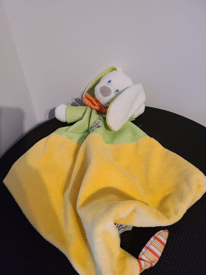 Chien MOTS D'ENFANTS doudou plat vert et jaune panda 121