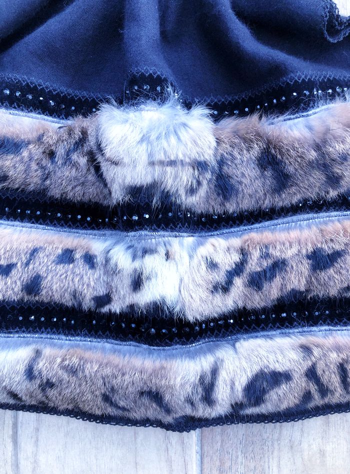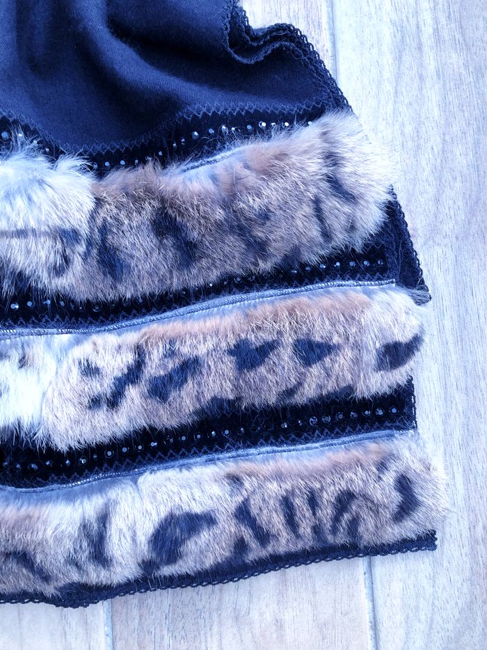 ZAZ - ÉCHARPE RECTANGULAIRE NOIRE FEMME AVEC FINALITÉS FAUSSE FOURRURE & STRASS - photo numéro 7