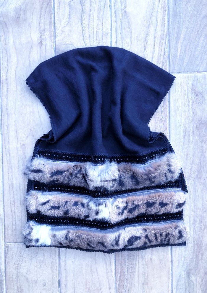 ZAZ - ÉCHARPE RECTANGULAIRE NOIRE FEMME AVEC FINALITÉS FAUSSE FOURRURE & STRASS