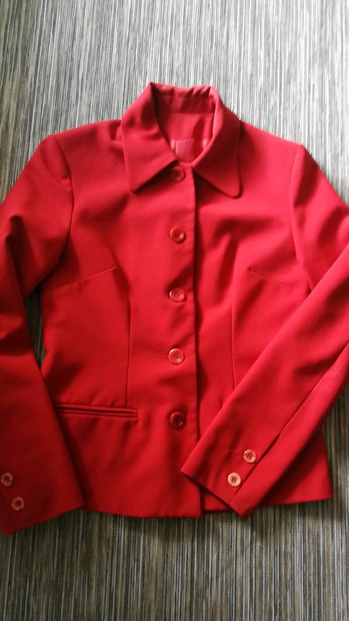 Blazer rouge, jolie coupe. À noter qu'il mériterait un nettoyage pour enlever les traces aux manches. #valerieravaissetaille38 (n'oubliez pas d'enlever vos filtres 😉)