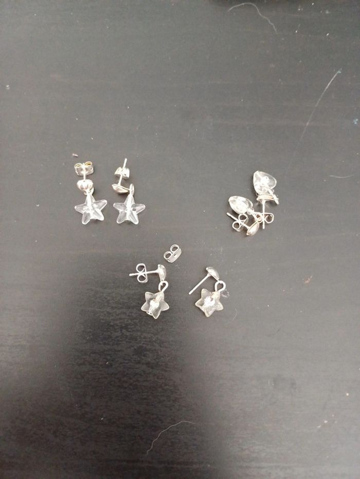 Lot 3 paire de boucles d'oreilles 1 cœur 2 étoiles différentes Blanche / transparent Fait main. #bijouxfantaisie #bouclesdoreillesfillette #bijouxlexou_77