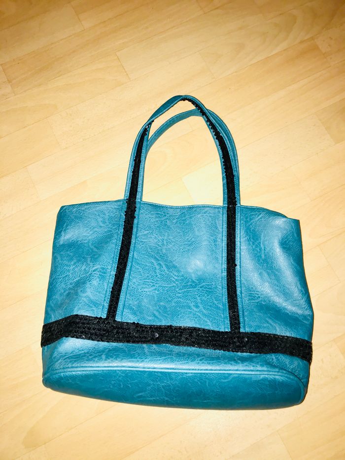 Sac bleu et sequins noirs - photo numéro 1