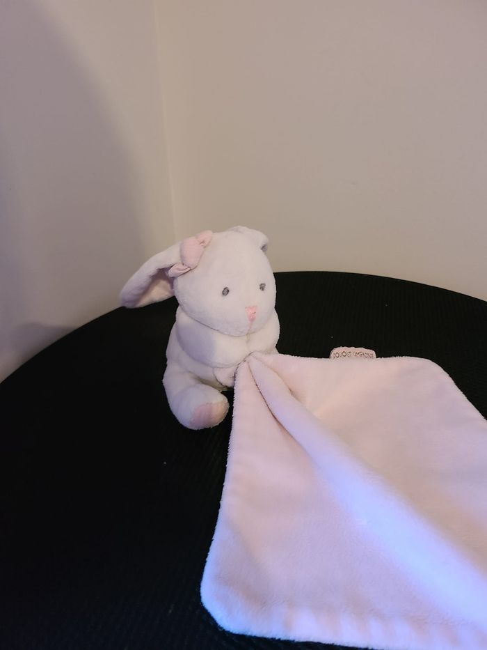 DOUDOU MOUCHOIR LAPIN DOUDOU ET COMPAGNIE BLANC ET ROSE 25 CM 120