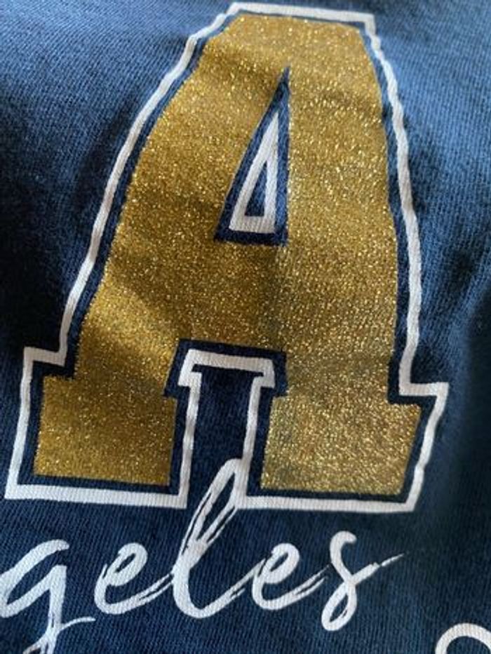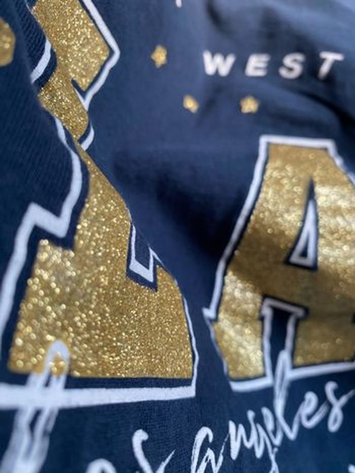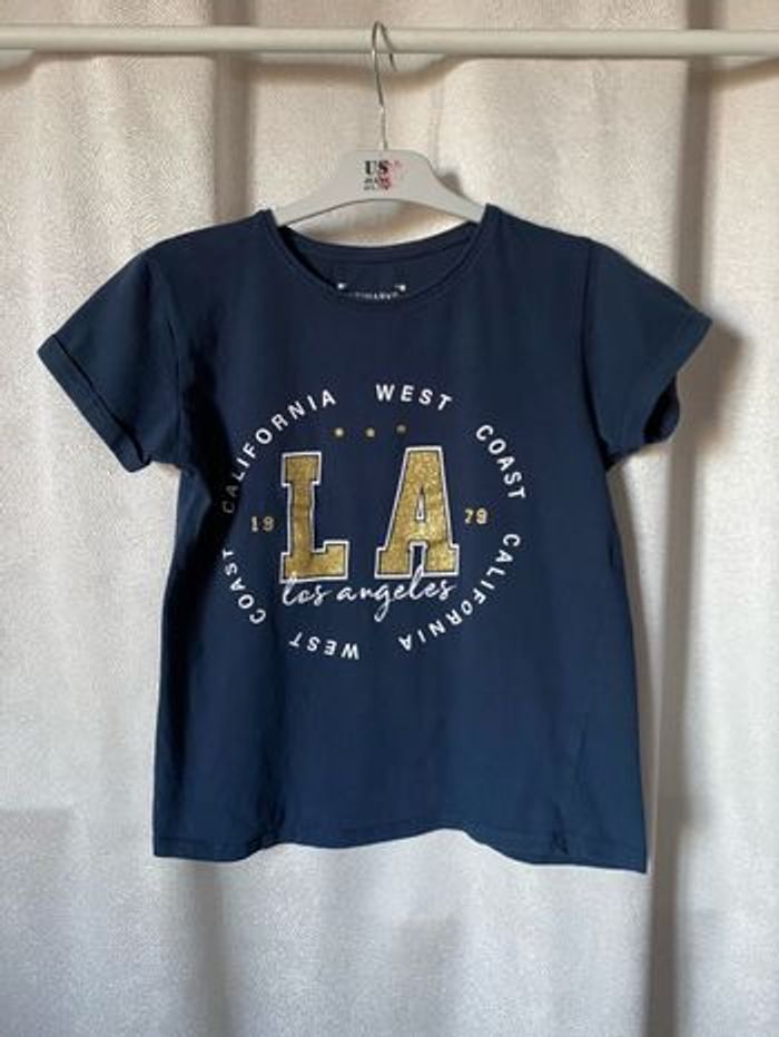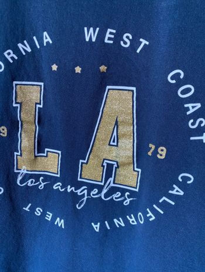 T-shirt bleu marine L’os Angeles paillettes dorées Manches courtes Taille 10/11 ans 146 cm Primark