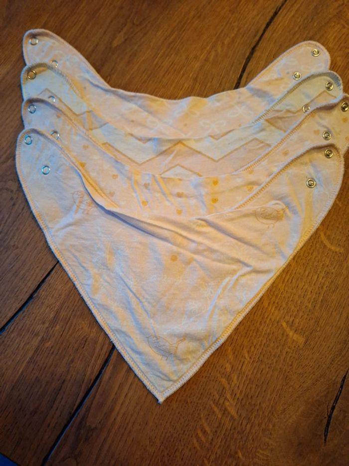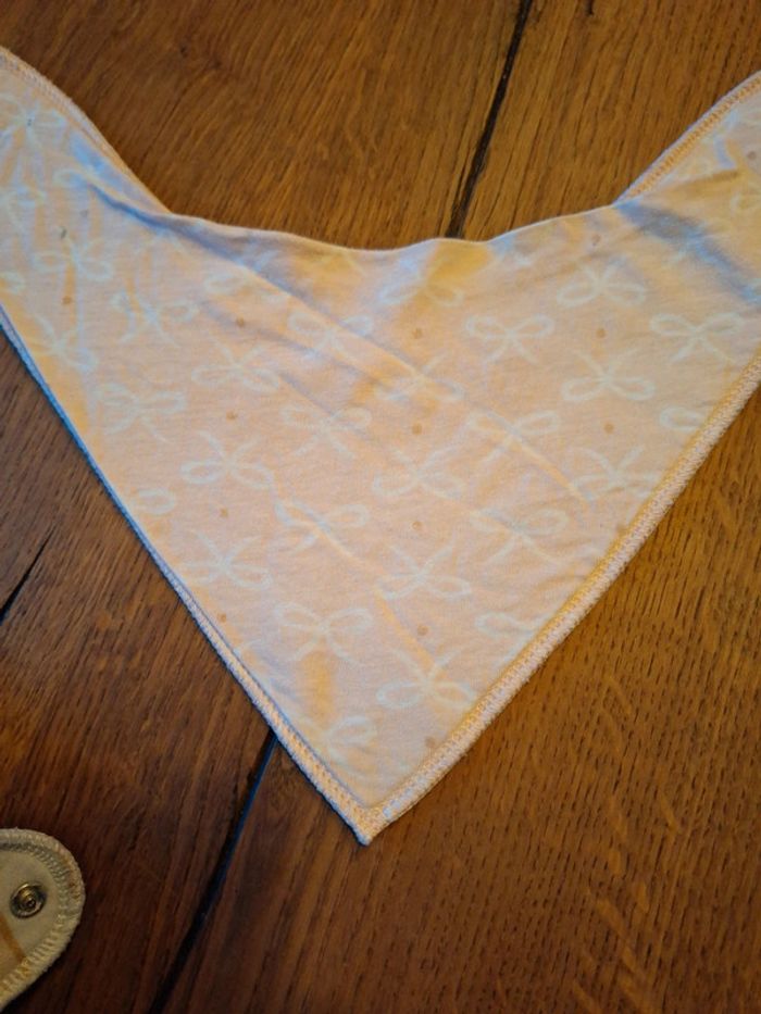 Lot de 4 bavoirs Rose avec motif et décors paillette Fermeture ajustable avec la double pression Utilisé mais encore en bon état Pas de tâche