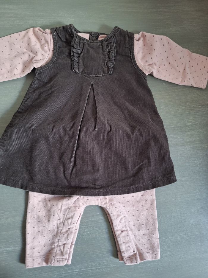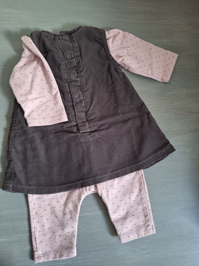 FILLE 3 MOIS N°838 combi robe Rose / marron Pression dos / entre jambes 100% coton Taille 3 mois Kitchoun 3,50€ #kelly_fille3mois
