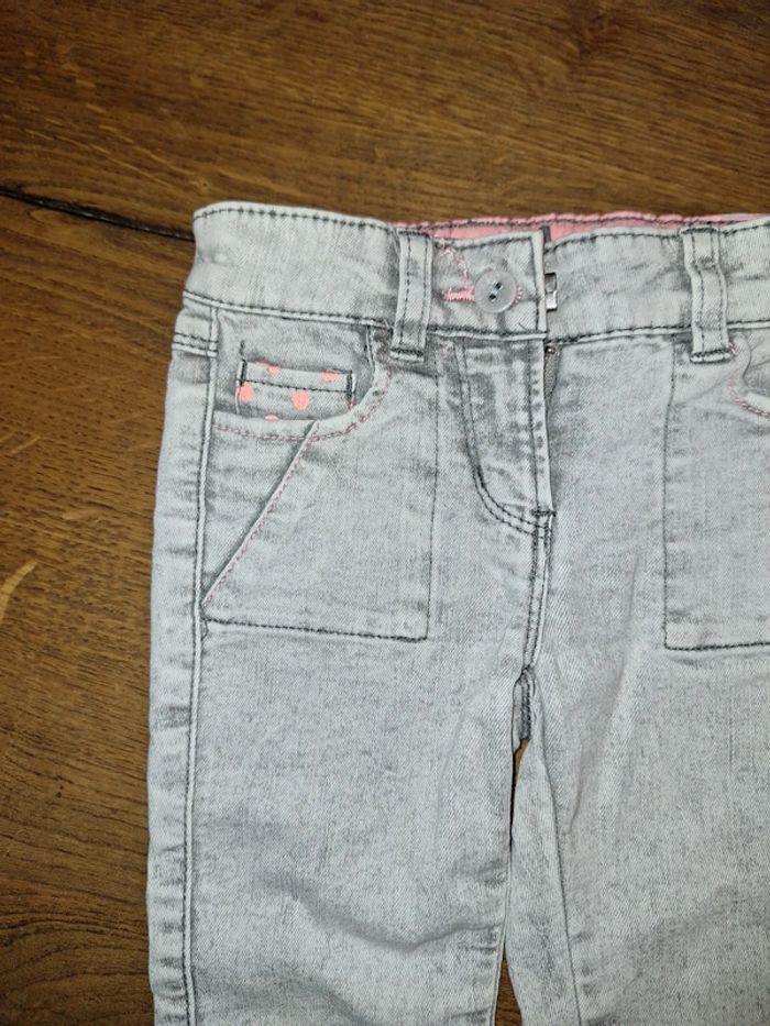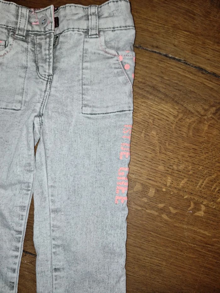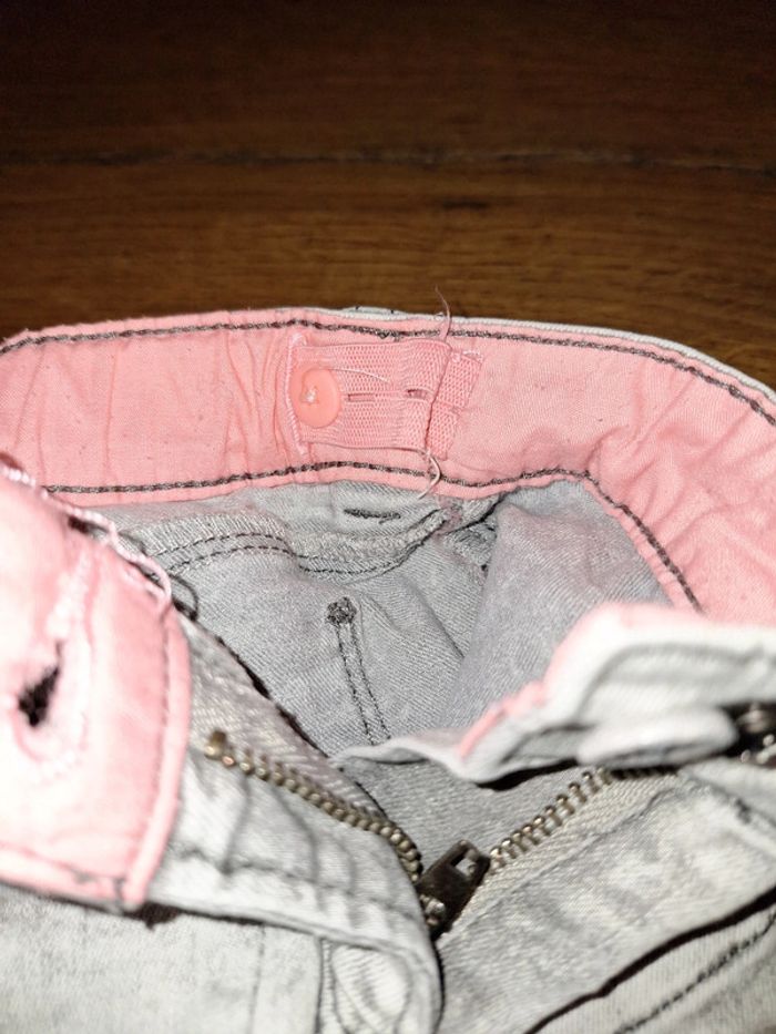 Jeans slim gris La pression étant cassé, j'ai remis un bouton a côté Taille réglable