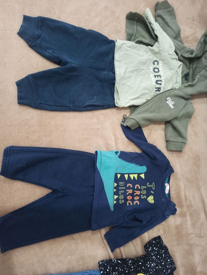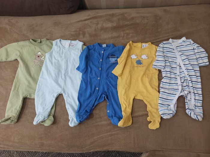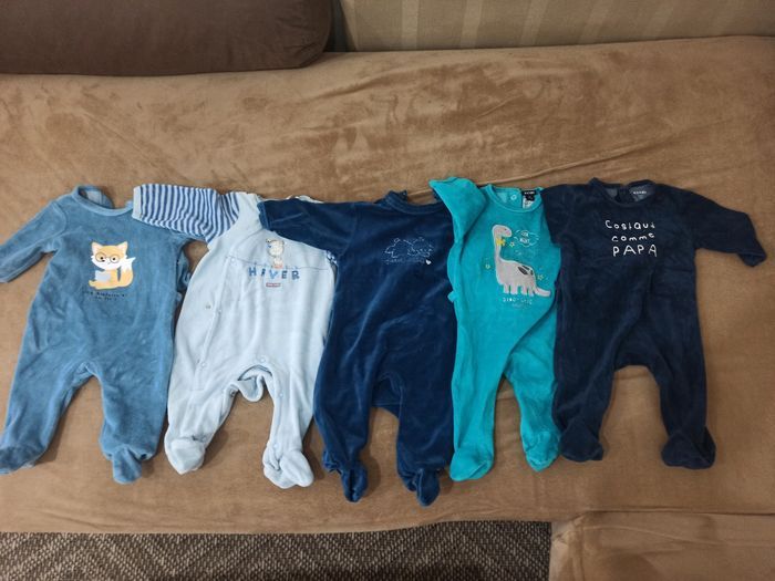 Lot 66 pièces 3 mois 5 Pyjamas manches longues velours 5 Pyjamas : 1 sans manches , 1 épais , 3 manches longues léger Ensembles : 2 gilets 1 pull bleu 11 T-shirt manches longues 2 T-shirt manches courtes 12 Pantalons 1 salopette 6+5+6 Bodys manches courtes 5+5 Bodys manches longues Je peux vous envoyer a la demande les photos des lots de body que je nai pas pu mettre car ils ne veulent pas plus de 10 photos