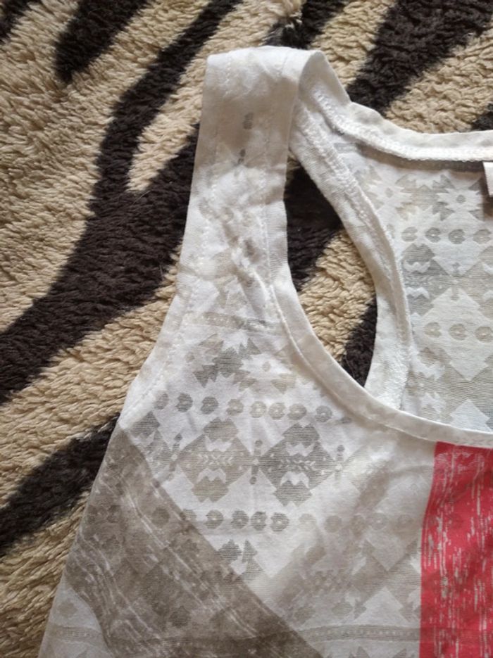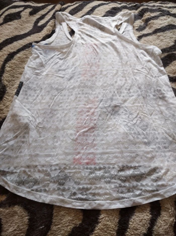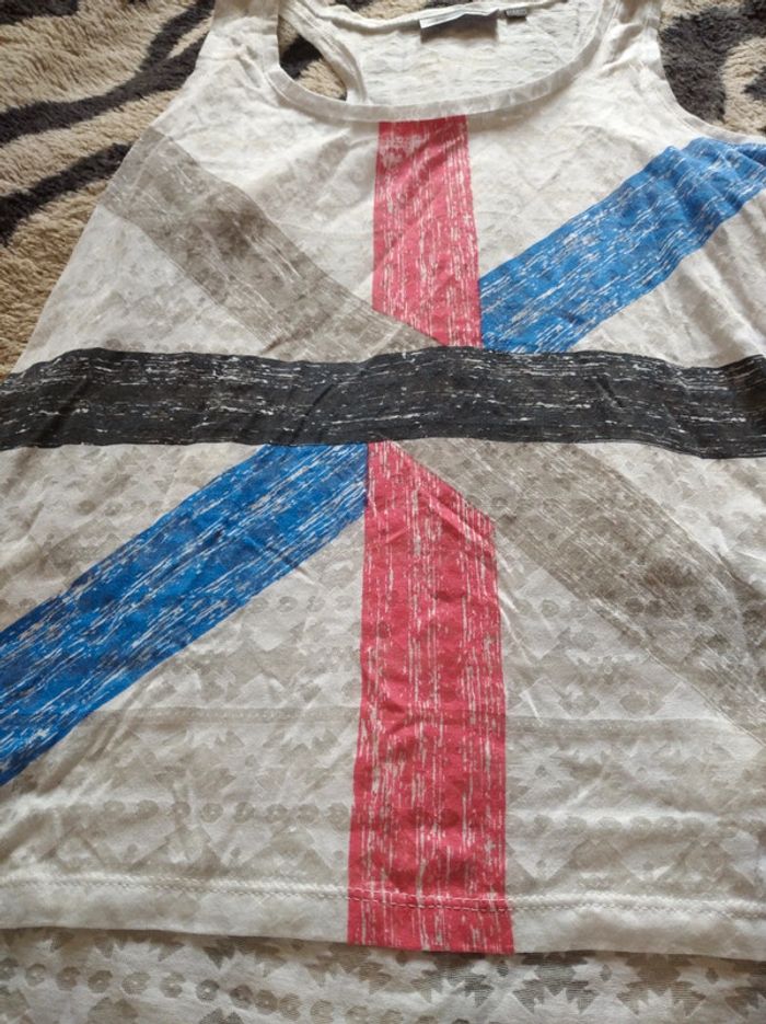 Débardeur blanc avec drapeau anglais Transparent effet aztèque Plus long derrière que devant Marque Kiabi Taille M