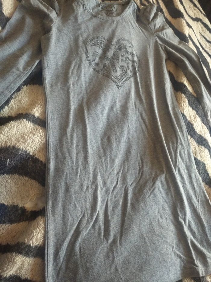 Tee-shirt long gris manches longues Reserré aux épaules Marque Guess Taille indiquée 14 mais va à du M