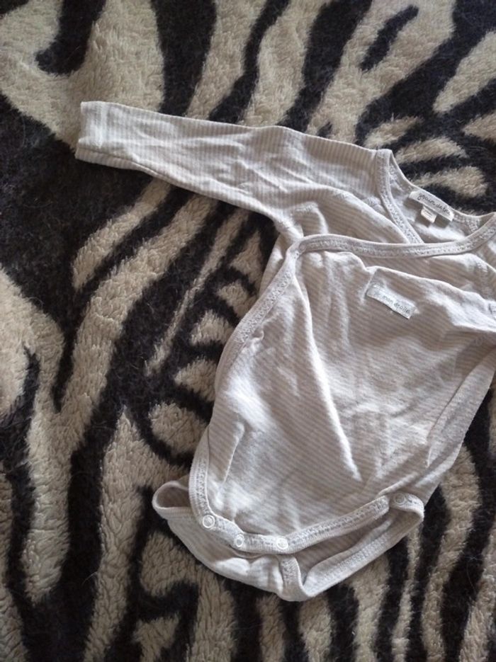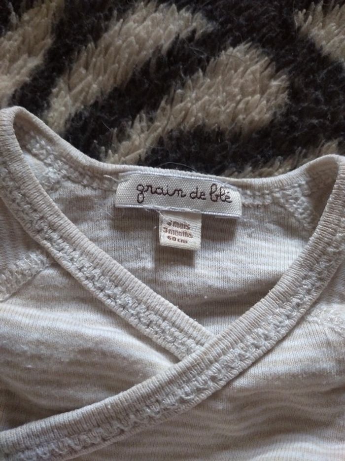 Body rayé blanc et beige Taille 3 moi Marque Grain de blé