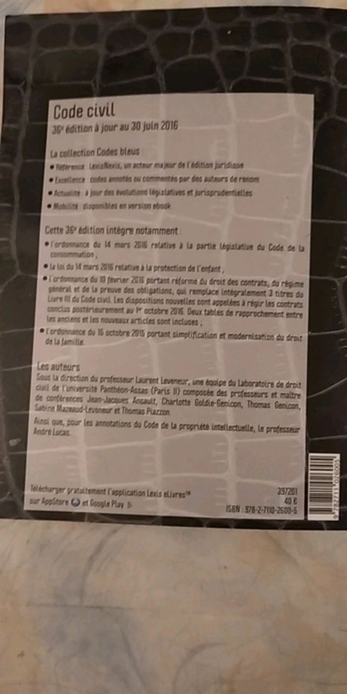 Code civil de 2017 Lexis nexis Servi 1 fois