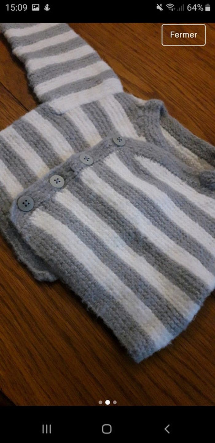 Gilet rayé gris et blanc en laine Taille 3-6 mois