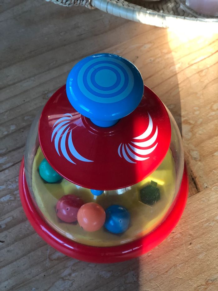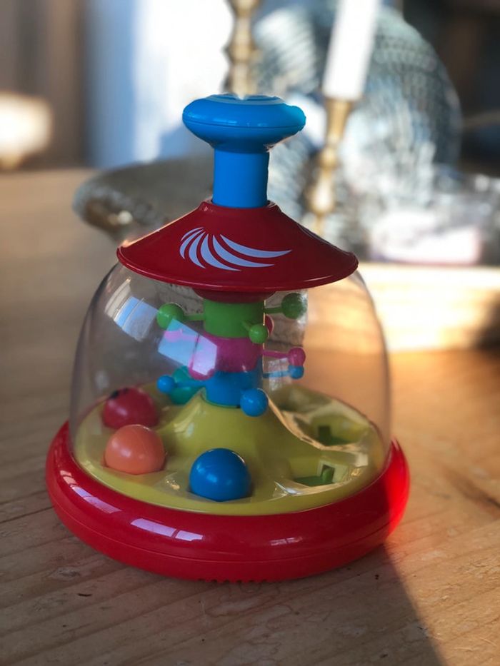 Vends joli boulier Appuyez sur le bouton bleu pour faire tourner la toupie et faire s’envoler les billes