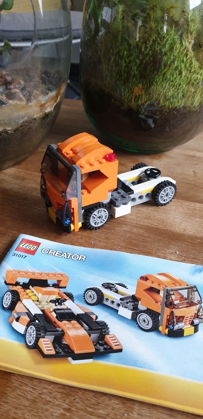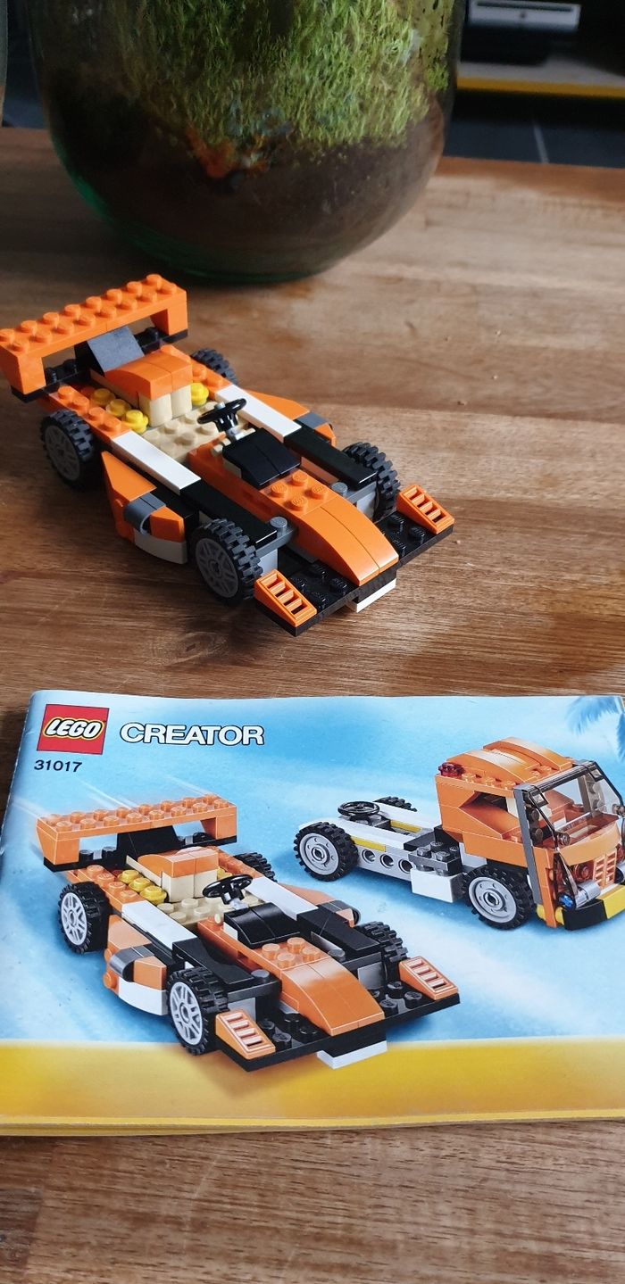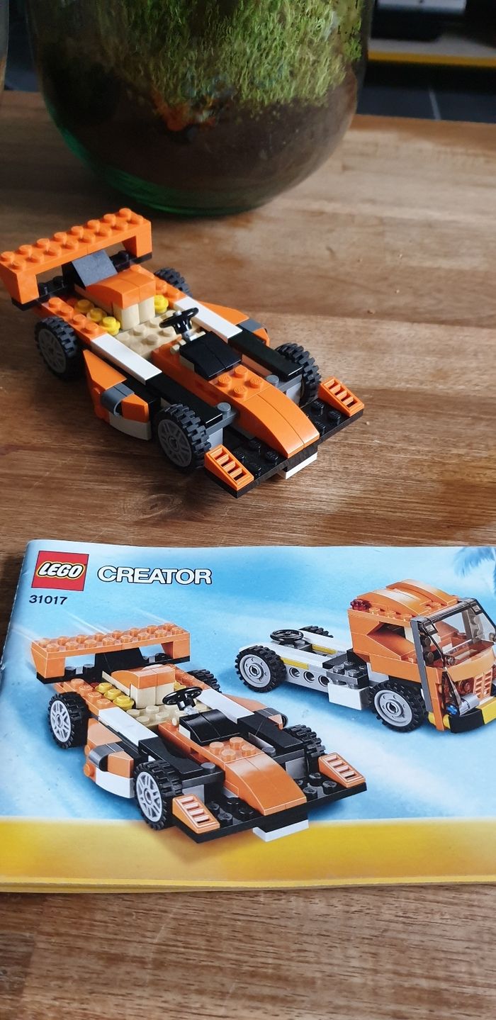 LEGO CREATOR 31017 Possibilité de construire 3 véhicules différents: - la décapotable - la voiture de course - le camion Vendu avec la notice mais sans la boîte