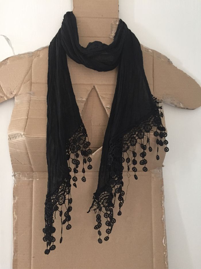 NEUVE Écharpe noire Coton et dentelle Longueur: 147cm Largeur: 18cm Cdt