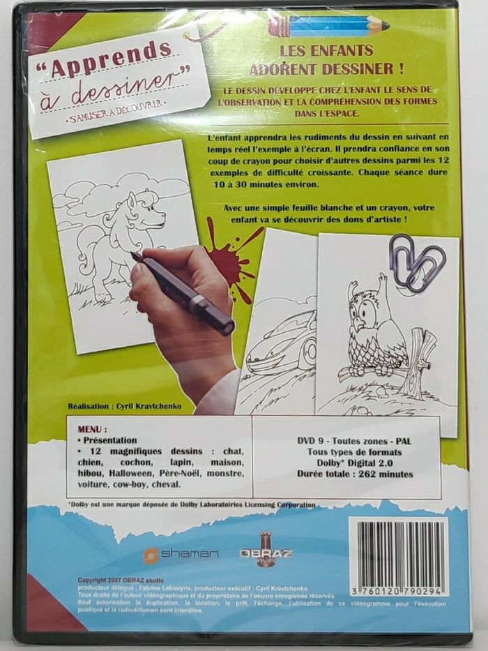DVD Apprends à dessiner 12 dessins de difficulté croissante Chaque séance dure 10 à 30 min A partir de 6 ans Neuf sous blister