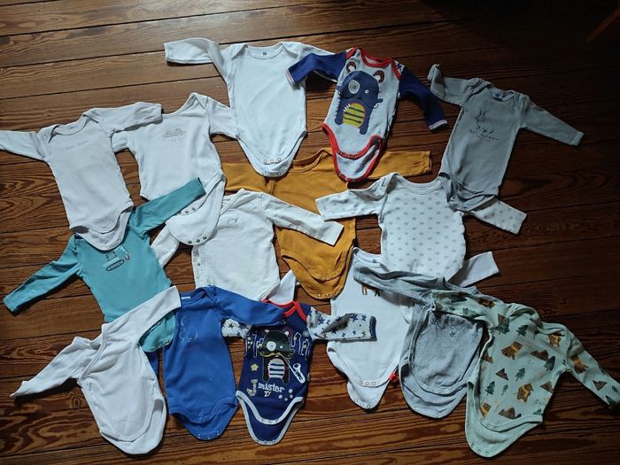 Lot de 15 bodies taille 3 mois. En très bon état.