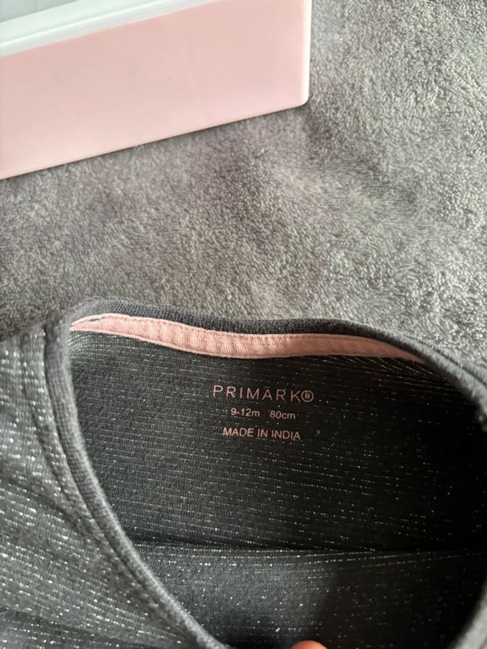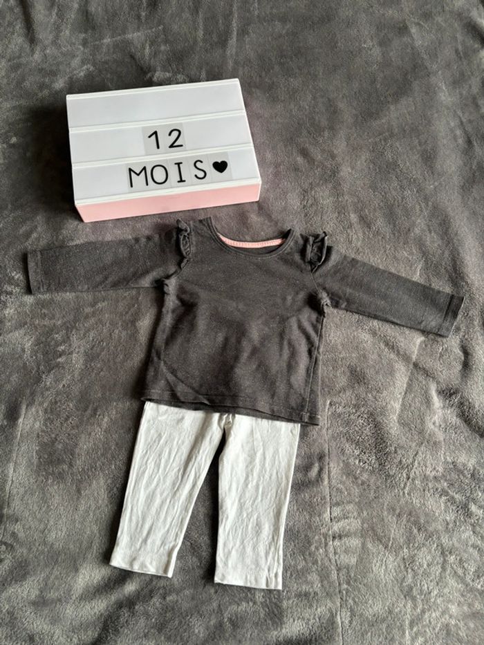 Ensemble : legging + t-shirt manches longues Marque : Primark Taille : 12 mois Couleurs : blanc et gris à paillettes 🩶🤍 État : très bon 🤩 Envoi rapide 📬 Tous les habits sont nettoyés avant l’envoi 😊 N’hésitez pas a faire un tour dans mon dressing pour profiter des réductions pour l’achat d’un lot 🌺