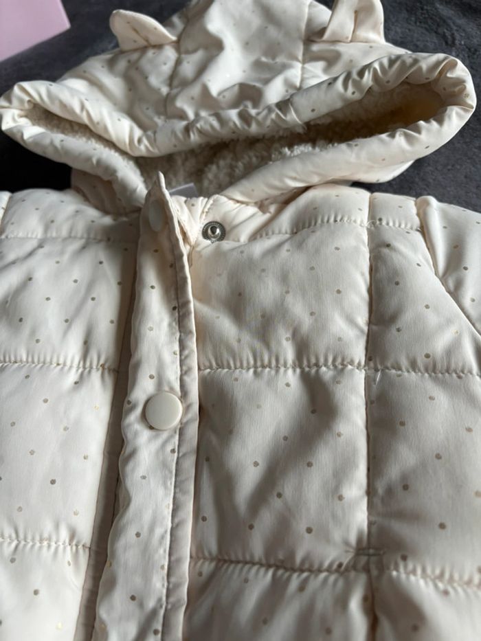 Veste chaude zippée avec capuchon Marque : Tex Taille : 12 mois Couleurs : beige avec des points dorés ⚪️🟠 État : très bon ! 🤩 Envoi rapide 📬 Tous les habits sont nettoyés avant l’envoi 😊 N’hésitez pas a faire un tour dans mon dressing pour profiter des réductions pour l’achat d’un lot 🌺