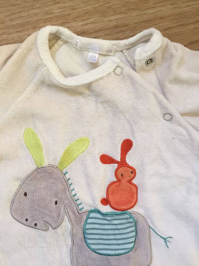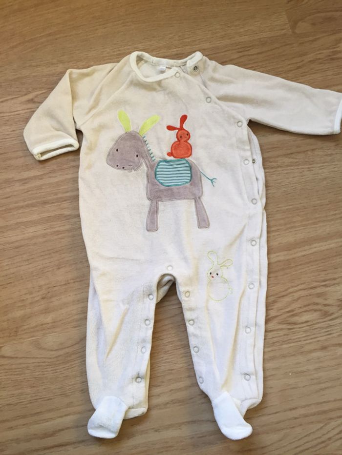 Taille 9 mois sur l’étiquette mais taille grand, plutôt 12 mois. #alinehcmbebegarcon9mois