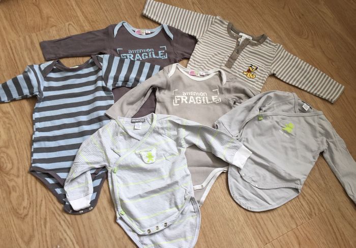 Taille 9 mois Tous en parfait état sauf un, tout petit trou visible sur la photo. 3 venant des 3suisses, 2 de chez Orchestra et 1 de chez H&M #alinehcmbebegarcon9mois