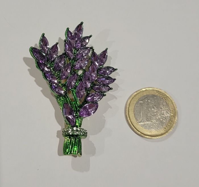BROCHE BOUQUET DE LAVANDE STRASS ! NEUF ! broche bouquet de lavande strass parme. Dimensions : 5,5 x 4 cms. Envoi rapide et soigné.