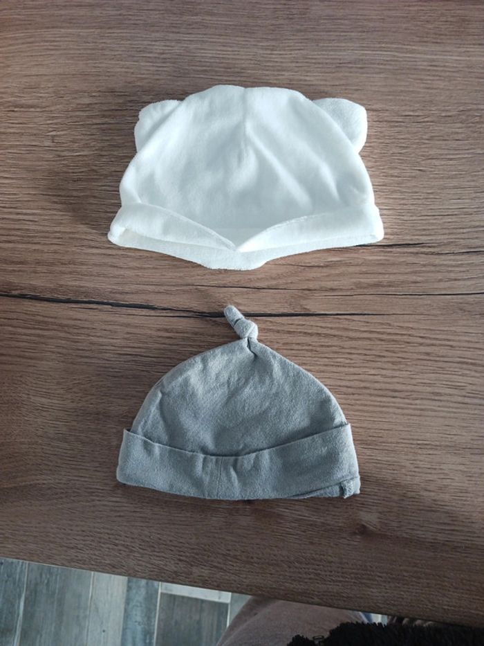 Le bonnet gris et naissance et le blanc et 1 mois 1€ les 2
