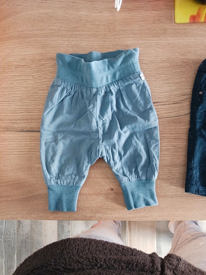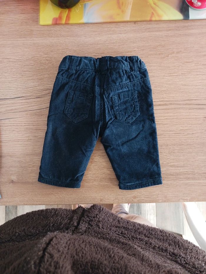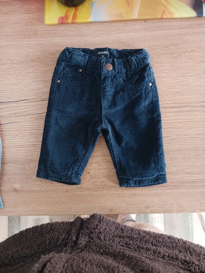 Porté 1 fois Le pantalon bleu clair vient de tape à l'œil et le bleu foncé vient de kiabi Taille 1 mois 2€ les 2