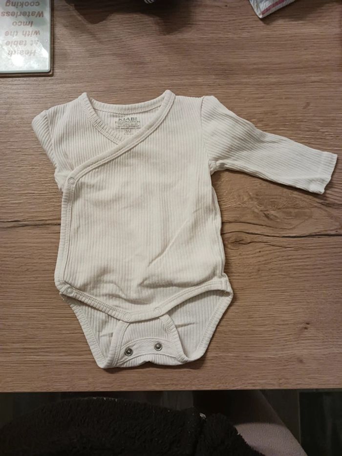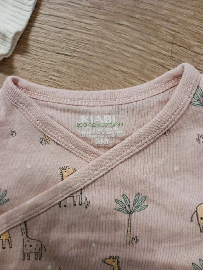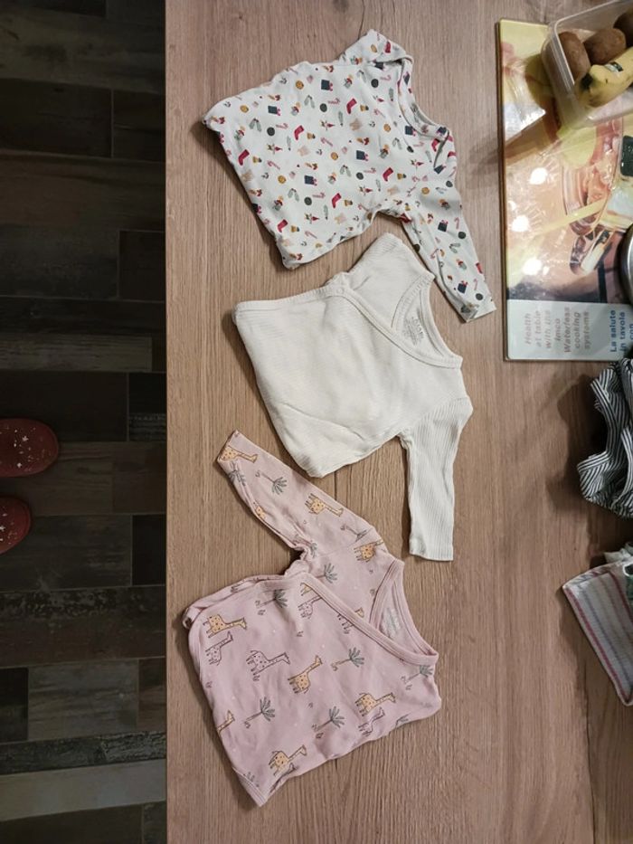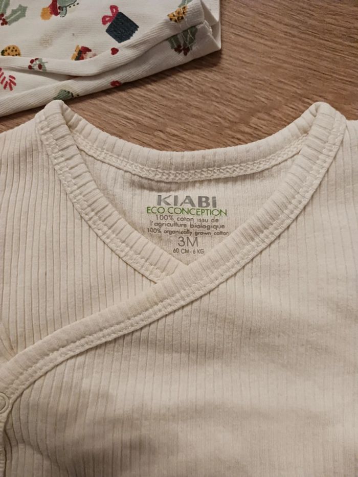 Bodys manche longues Il y a 2 bodies de chez kiabi et 1 de chez tape à l'œil Le bodies qui et au milieu de la photo et de couleur crème 1,50€ les 3