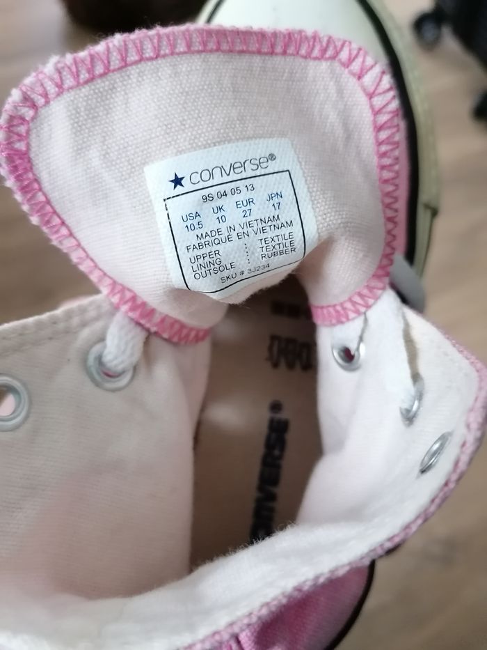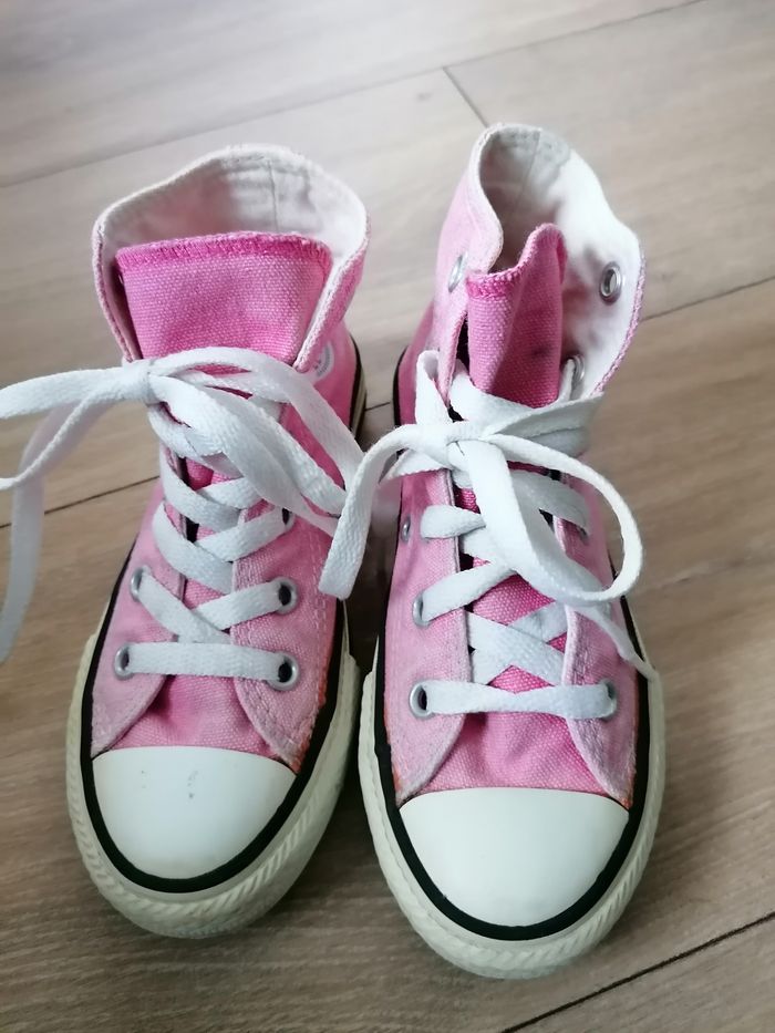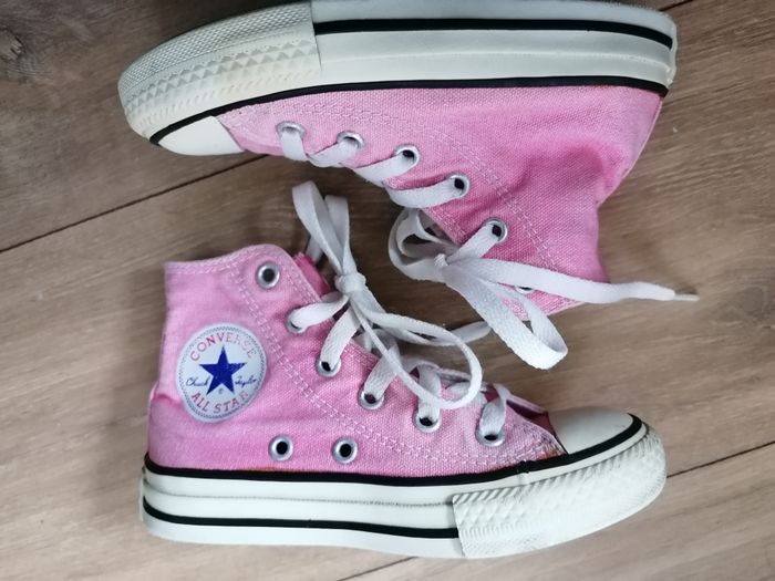 Vends ces Baskets montantes CHUCK TAYLOR ALL STAR CONVERS Rose en taille 27 en bon état Il peut être récupéré en personne à Romillé ou je le posterai.
