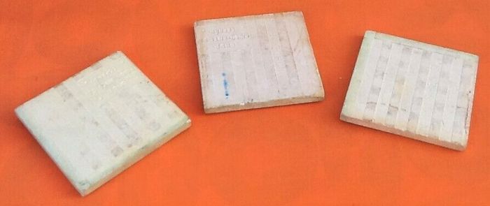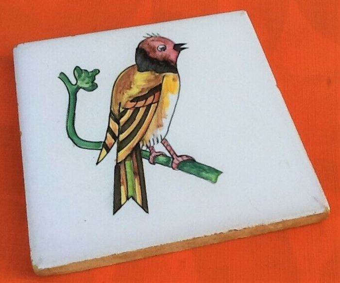 3 Carreaux anciens en céramique Décor d' oiseau sur branche Pinon y Ribes S.L Onda (Castellon) Made in Spain (100x100x8)mm Poids total : 440grs