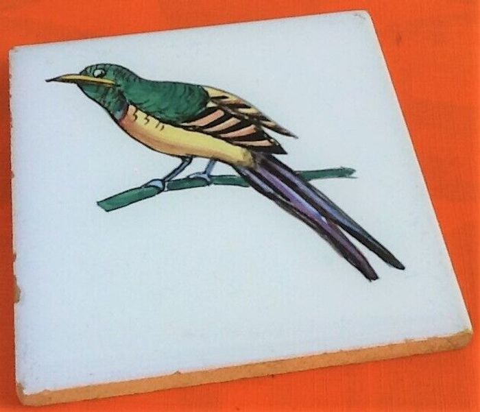 3 Carreaux anciens en céramique  Décor d' oiseau sur branche