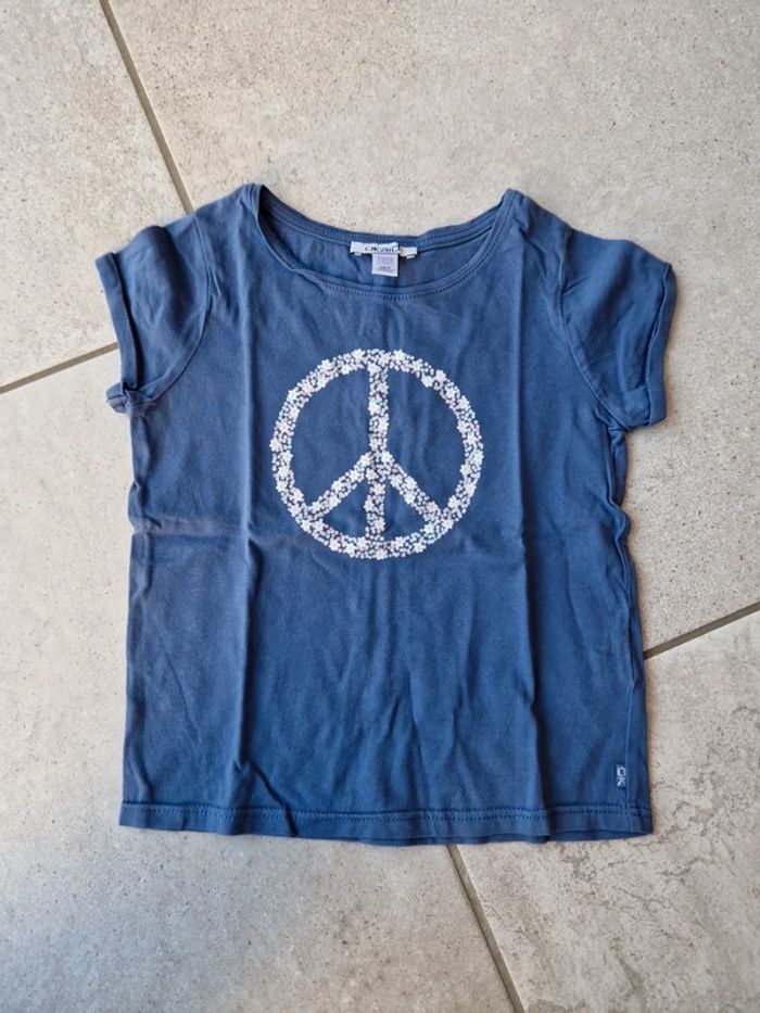 Tee-shirt 5 ans, couleur bleu mauve. Très bon état