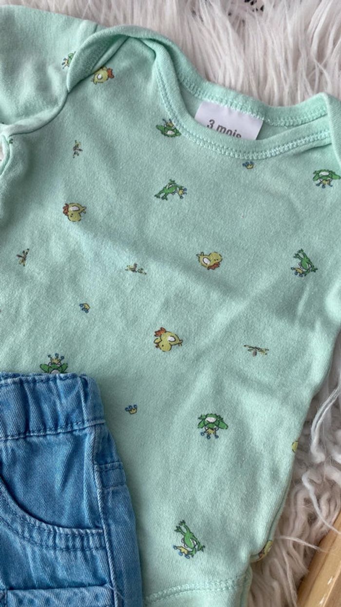 Ensemble garçon vert et bleu jean 3 mois Kiabi 🐒 - photo numĂ©ro 3