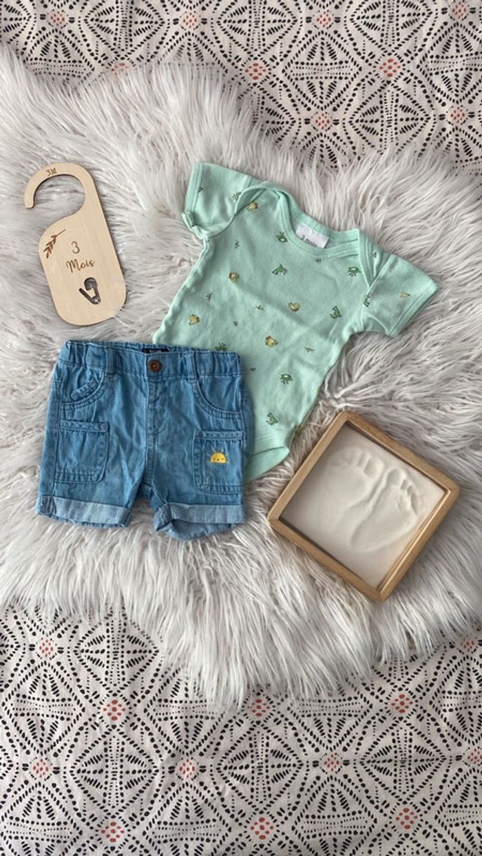 Ensemble garçon vert et bleu jean 3 mois Kiabi 🐒 - photo numĂ©ro 1