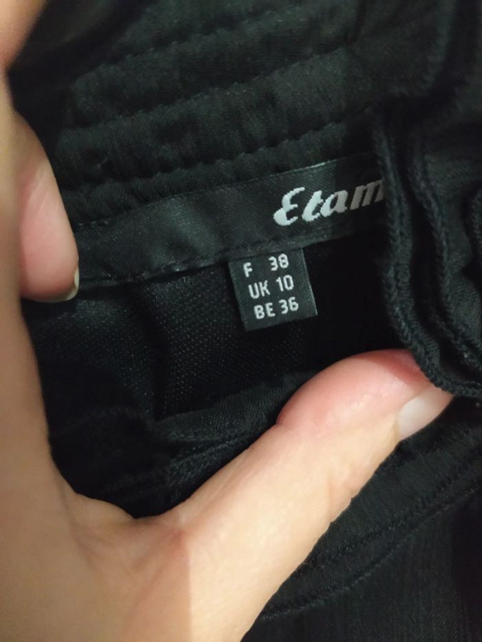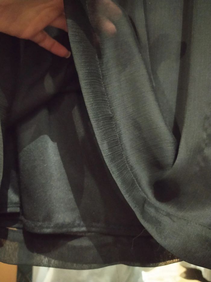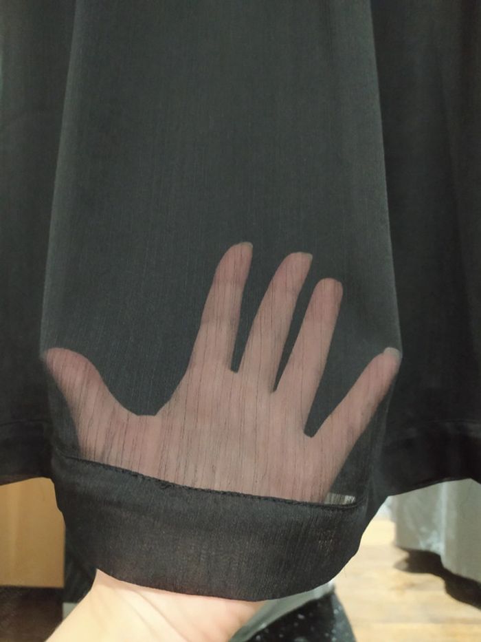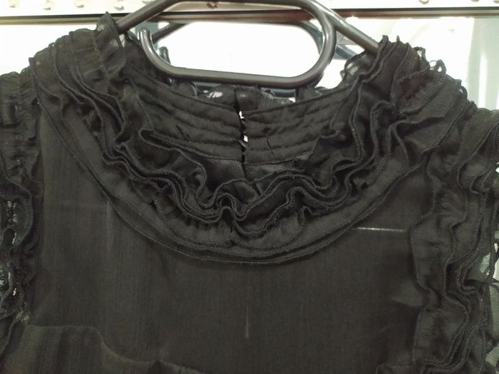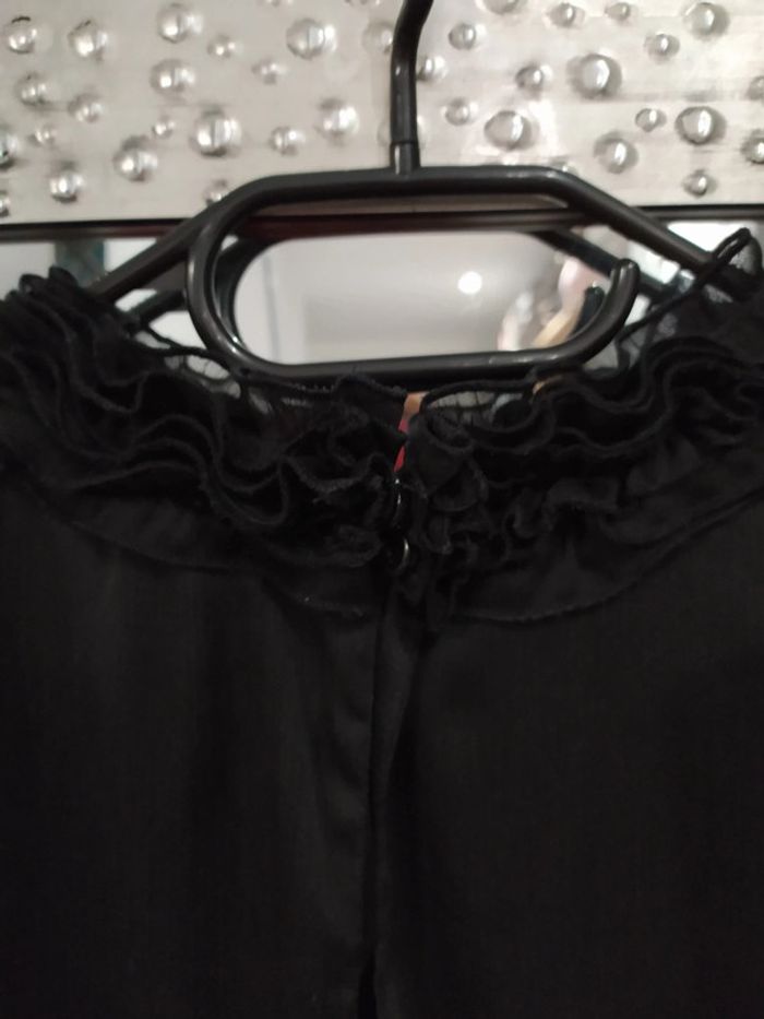 Portée une fois, en parfait état. En dentelle noire, haut de la poitrine transparente, le reste doublé par un jupon Col et manches à dentelle travaillée. Fermeture dans le cou par 2 boutons.