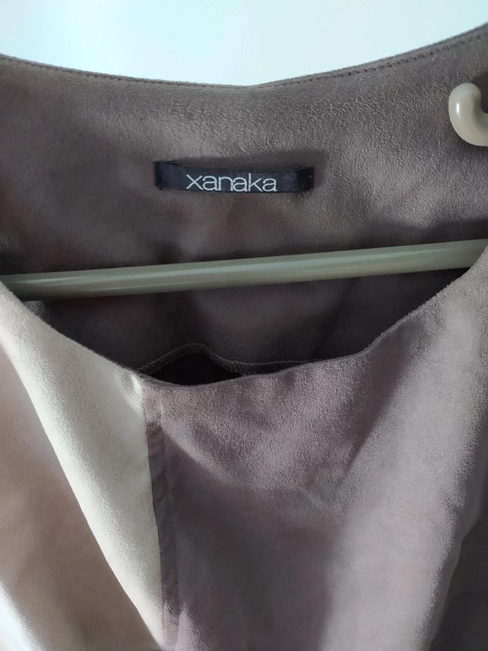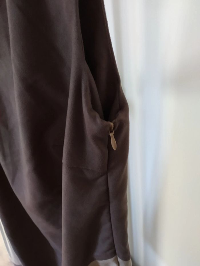 Robe effet peau de pêche beige et marron. Fermeture sur le côté. Plutôt habillée. Très peu portée, en très bon état. Article lavé pour la vente. Maison non fumeur et sans animaux.