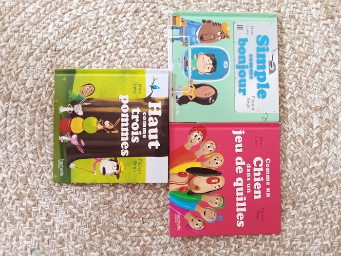 Collection 2017 "C'est comme ça" Marc Lévy et Florent Begu Éditions Hachette Jeunesse - Simple comme un bonjour - Comme un chien dans un jeu de quilles - Haut comme trois pommes