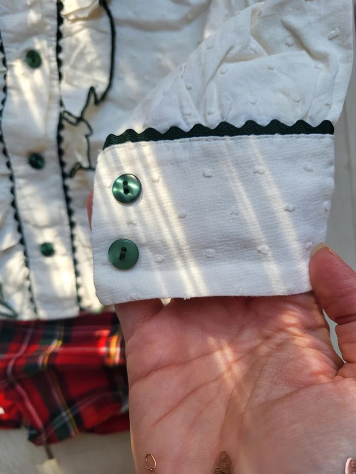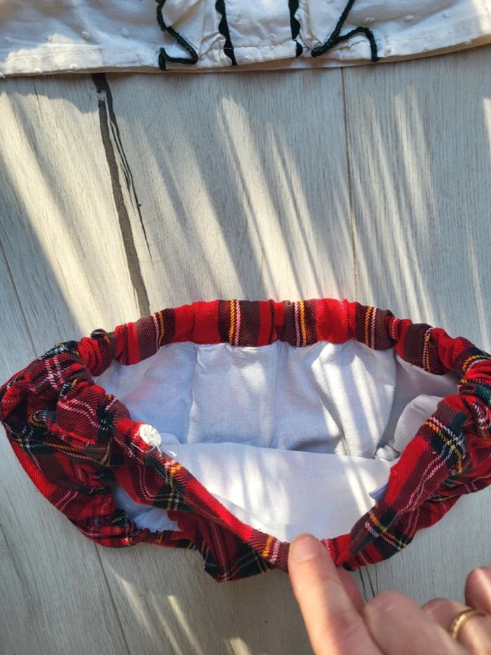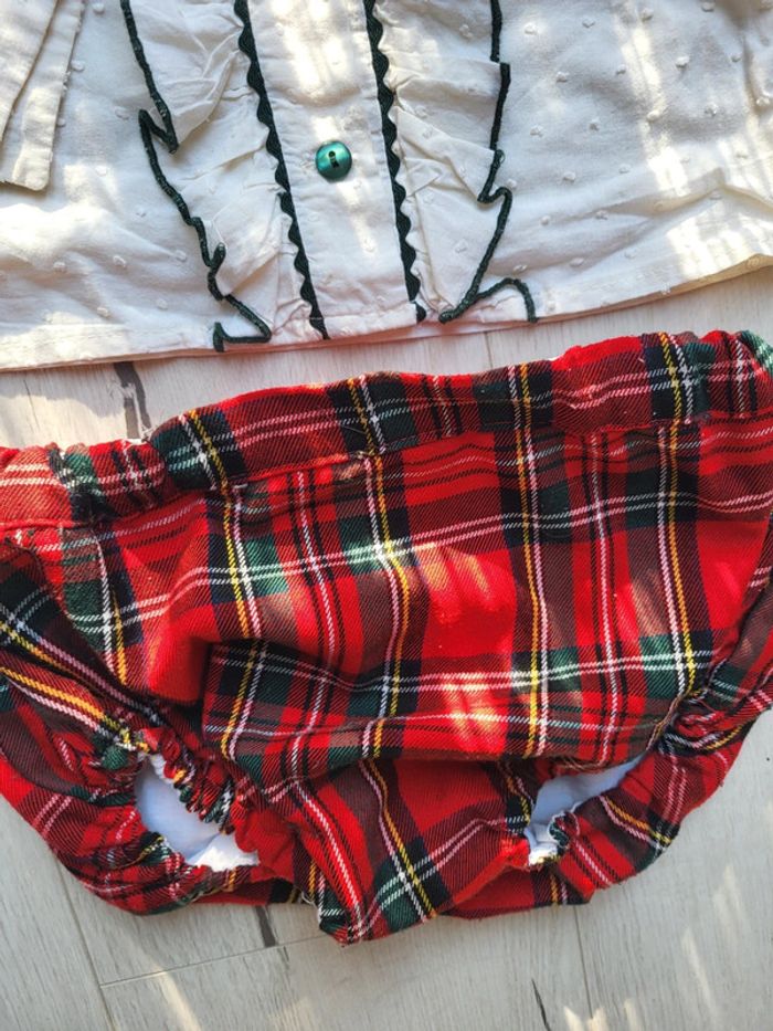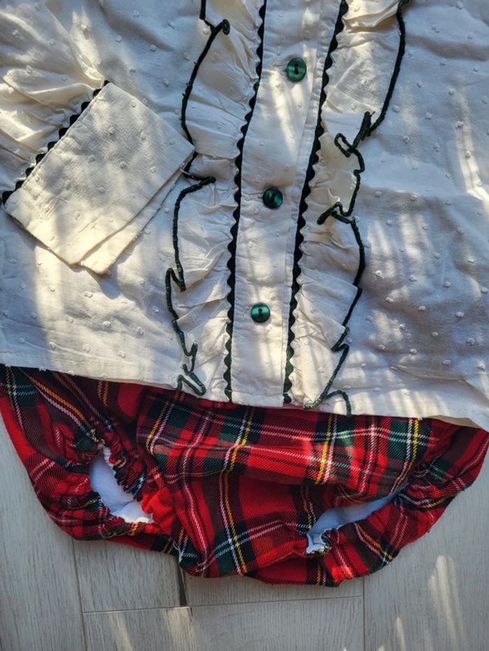 Sublime ensemble petite fille 4ans. Une chemise en plumetis et volants petite minou. Un bloomer type motif écossais fait par une créatrice. #4anstatiana #plumetis #chemise #ensemble #bloomer #4ans #petiteminou