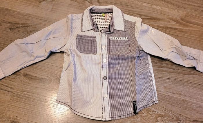 Chemise blanche et bleue à rayures manches longues fermeture boutons marque Orchestra 4 ans