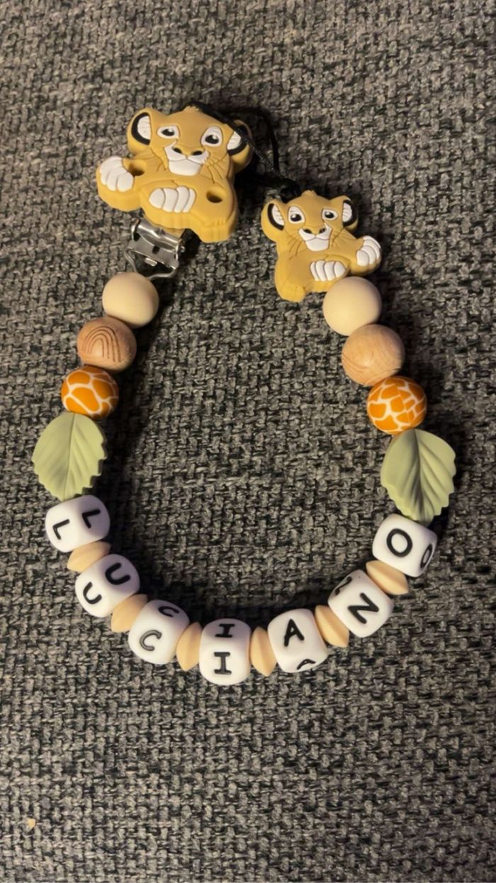 Attache tétine personnalisé en silicone ou en bois au souhait de l’acheteur . Personnalisable au choix de l’acheteur que ce soit la couleur comme le prénom ou le thème . Le fil est doublé pour plus de sécurité tout le long de l’attache tétine. N’hésitez pas à me demander et regarder mon dressing. Une photo vous sera envoyée avant l’expédition pour vous ayez un aperçu du rendu. Tous les produits sont réalisés avec du materiel spécial conçu aux bébés , enfants.