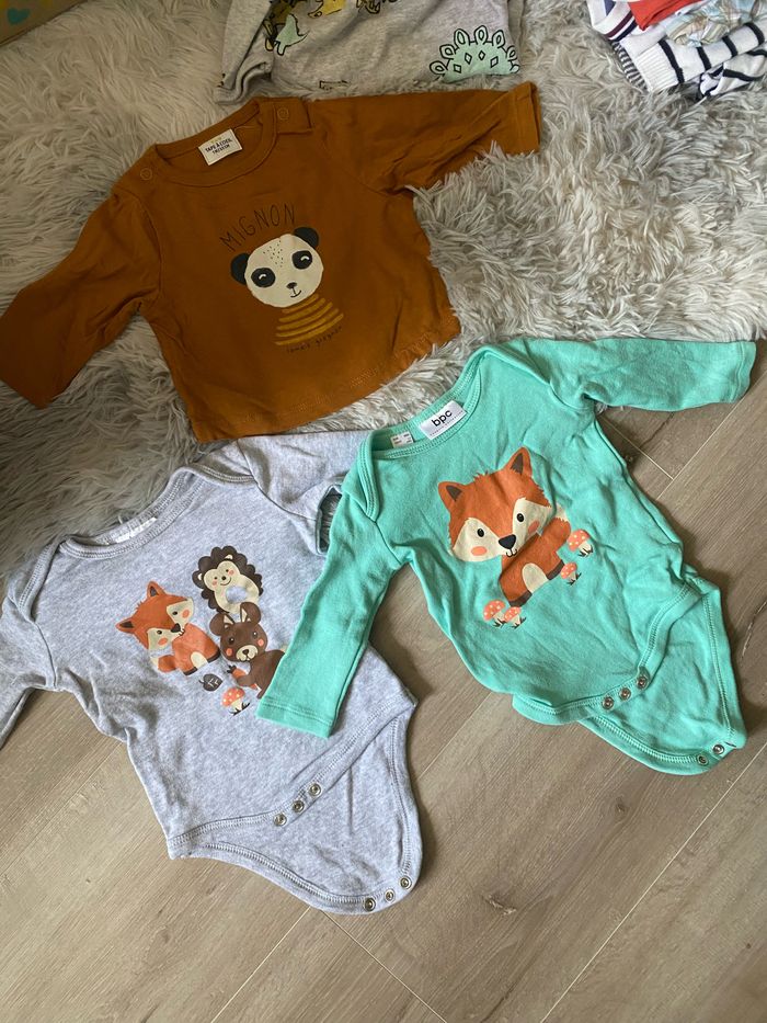 Bonjour, Je vends des vêtements pour petit garçon, Neuf,casi jamais porté propre et pour certains encore avec l’étiquette du magasin. Taille: du 0mois au 12mois. Vends à l’unité ou par lots -10% pour 3 articles -20% pour 5articles -50% pour 10 articles Me contacter si besoin d’informations supplémentaires