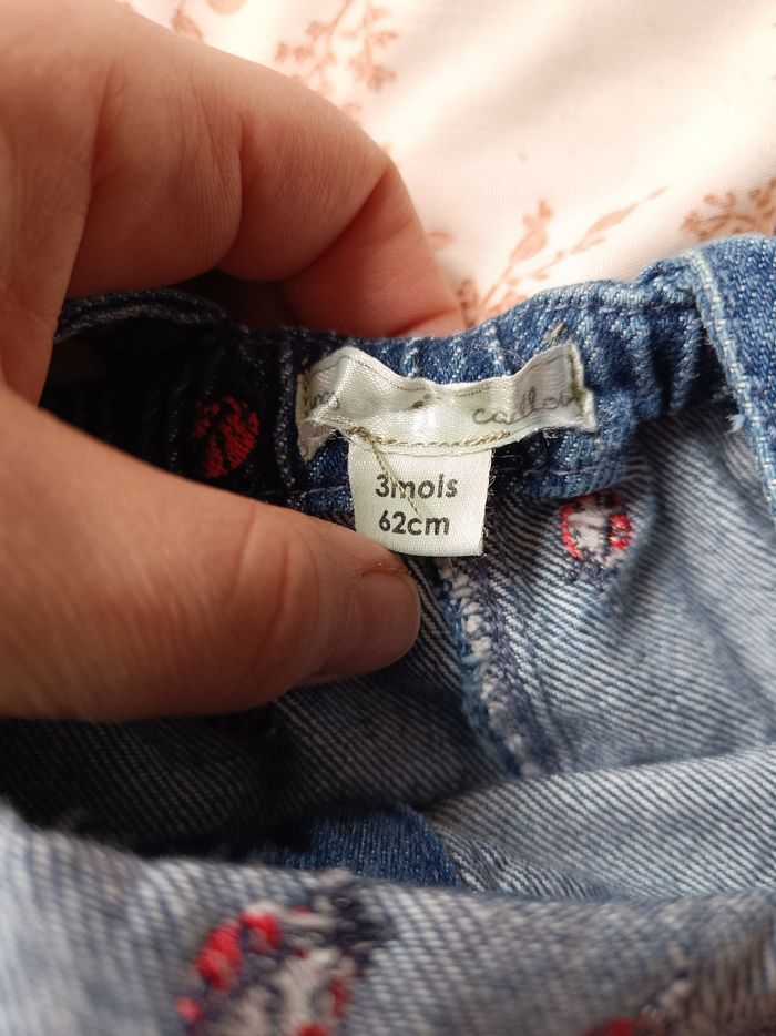 Hello, Voilà une robe salopette pour fille en bon état, marque: mes petits cailloux, taille : 3 mois.