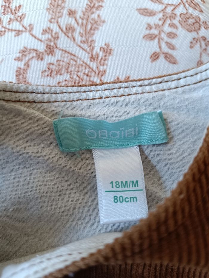 Robe velours en très bon état porté juste quelques fois, de Obaibi, taille :18 mois.