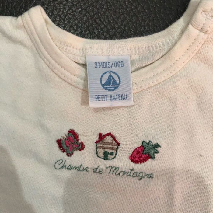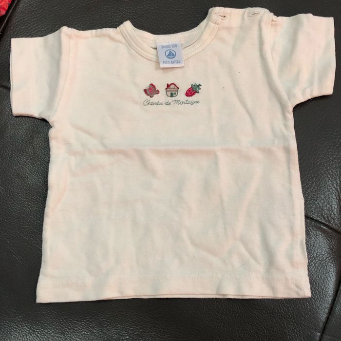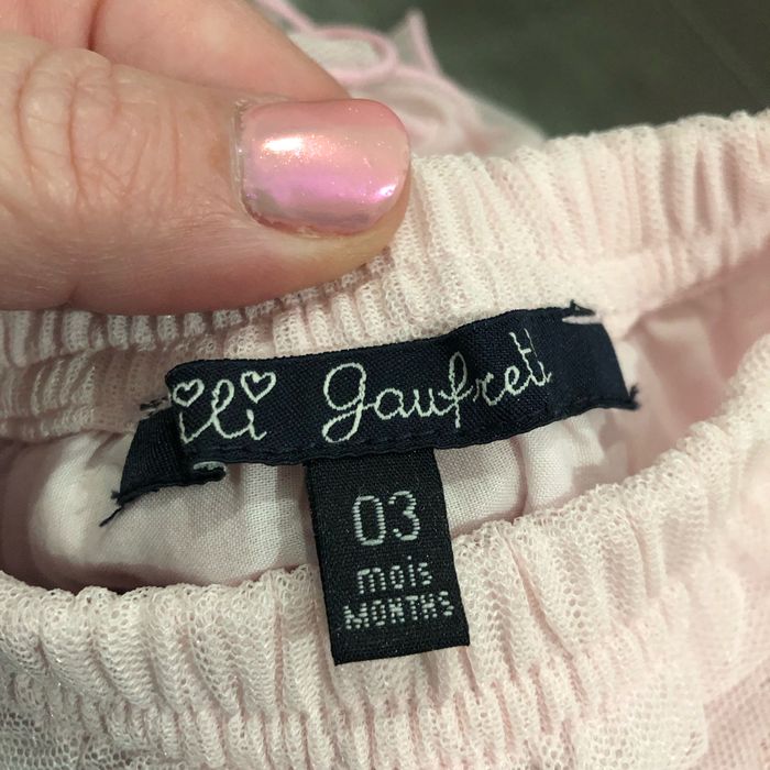 En très bon état 2 combinaisons (une orchestra et une Lili Gaufrette) 2 t-shirt manches courtes (un Tissaia et un petit bateau avec broderies) Une jupe tutu rose pâle Lili Gaufrette Pensez à faire des lots pour bénéficier de réductions