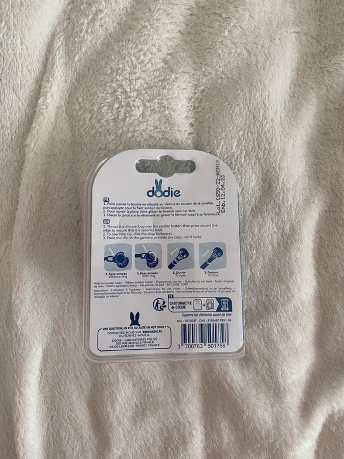 Déjà ouvert mais jamais utilisé. Attache avec anneau. Je viens de l'acheter mais ne s'adapte pas à la tétine de mon bébé.
