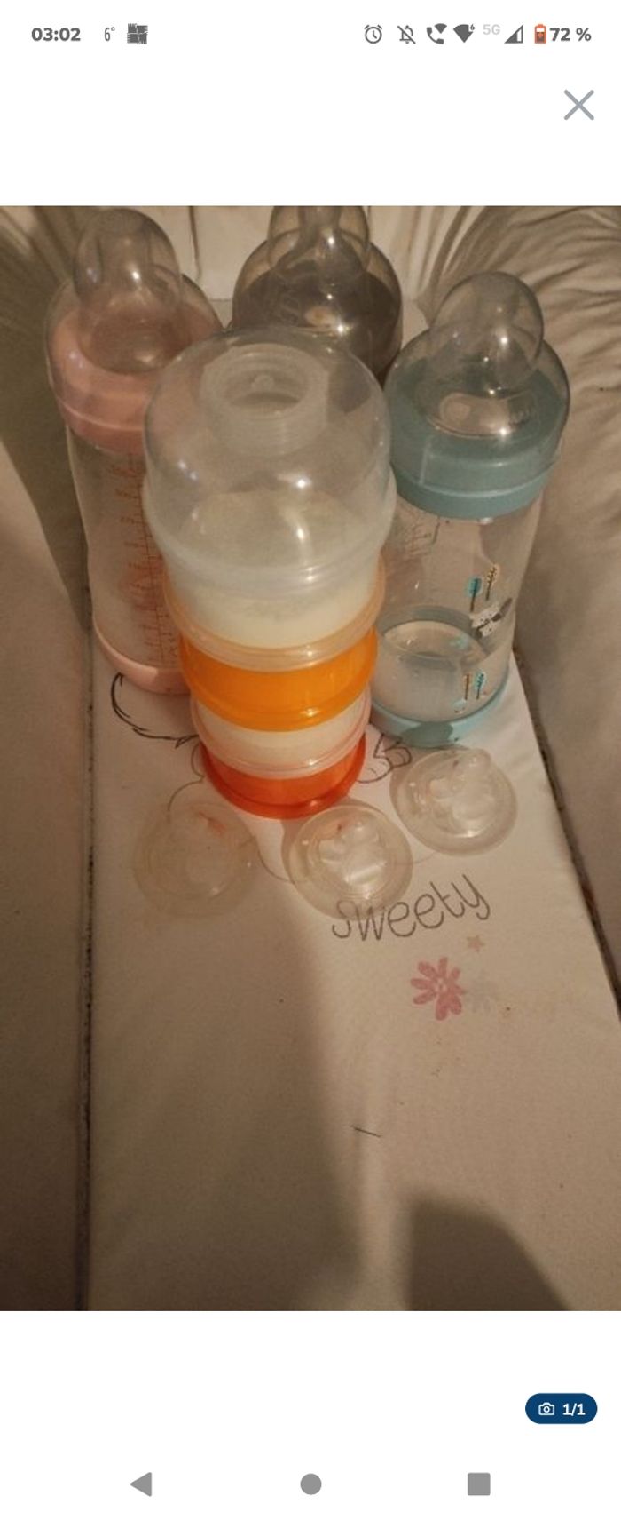 Bonjour je vends le lot de 3 biberons dodie mam de couleur bleu beige et rose plus 3 tétines taille 2 et 3 tétines taille 3 je précise qu ils sont neuf car je l ai ai acheté avant la naissance de ma fille j'ai voulus acheter les plus grands pour faire des économies mais finalement j ai du racheter des plus petits dodie car au début ils prennent très peu de lait je reste sur les dodie simples du coup je rajoute au lot 4 doseuse pour lait artificiel cordialement. PS: je précise que j'envoie les colis rapidement.