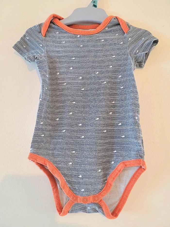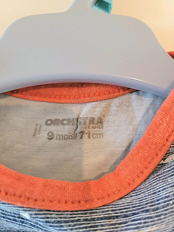 Body garçon Couleur bleu gris Marque orchestra Taille 6-9 mois ( 71 cm ) Petite flèche au niveau des fessée ( voir photo) En bon état #juliainayababyboys9mois