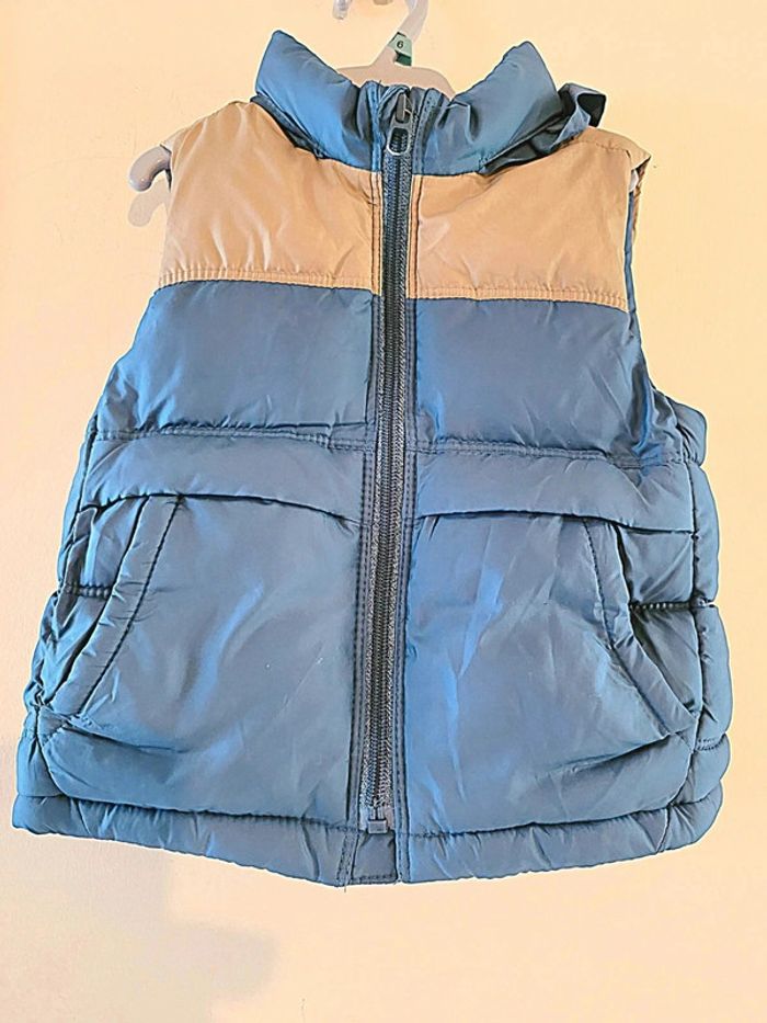 Doudoune sans manche avec capuche Marque zara Couleur bleu et beige Taille 12/18 mois (86cm) #juliainayababyboys18mois